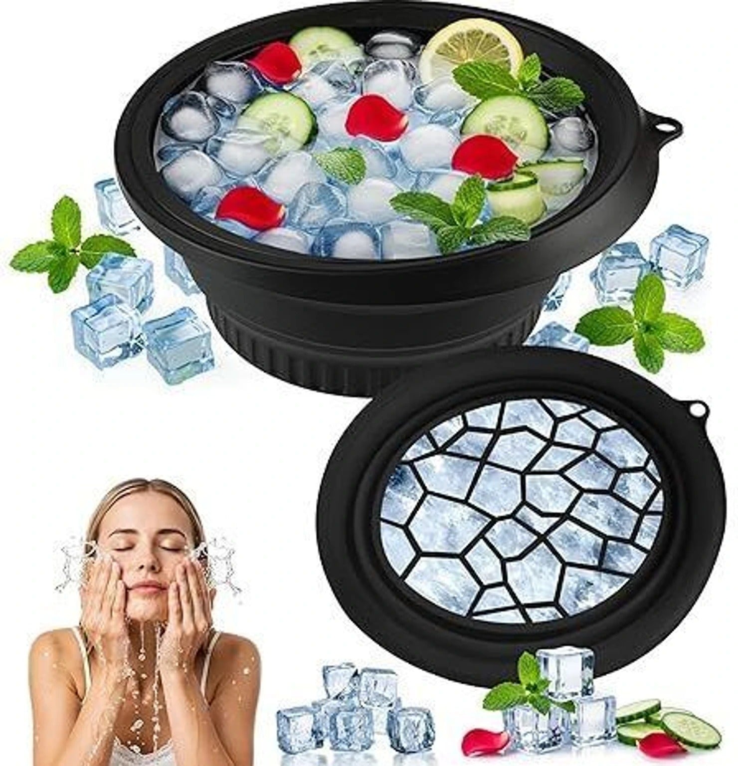 Mooues Silicone Massage Bowl Ice Bowl for Face Dip | Collapsible Silicone Ice Bath Bowl for Facial Therapy (Pack of 1, Black)